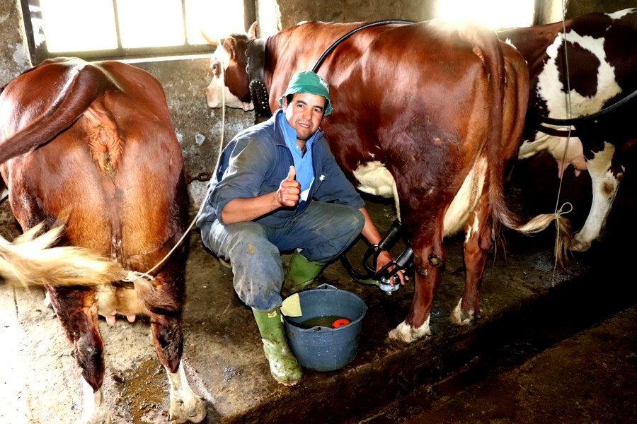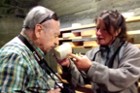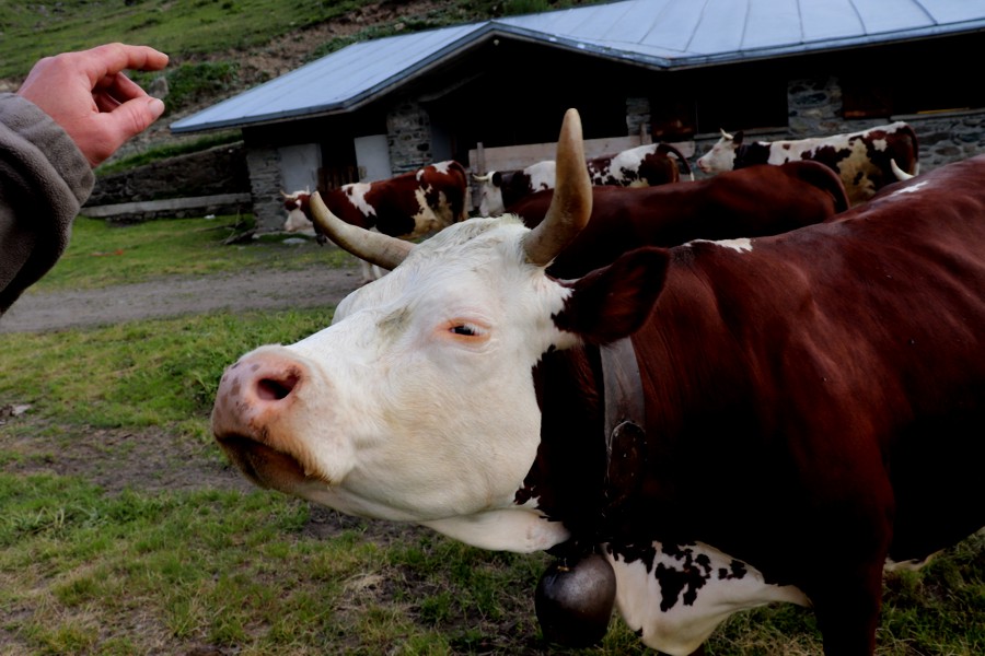 Alla comitiva si sono aggiunti anche Titti e Bella. E' un momento di relativo relax prima di avviare le operazioni che dovranno consentire la realizzazione di 4 forme di fontina.