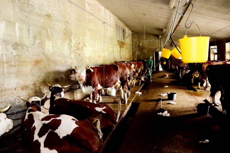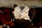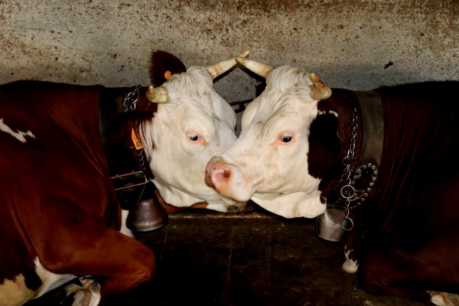 Siamo nella stalla, un ambiente che può ospitare fino a 100 vacche. In questo caso quelle che sto fotografando sono di razza "Pezzata Rossa".