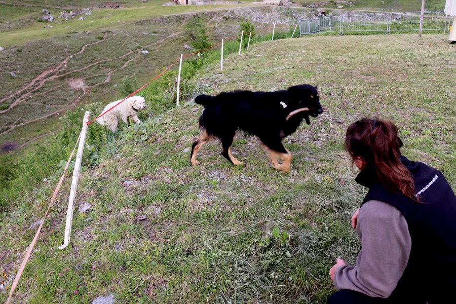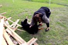 Fausta gioca con uno degli altri cani di titti. Questo si chiama Balù ed è ancora un cucciolo, malgrado sia di proporzioni non certo piccole.