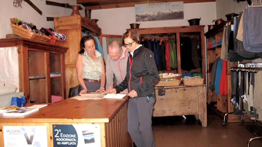 Ormai è una tradizione che il giorno dopo il nostro arrivo a Saint Jacques si vada a trovare gli amici Chiara e Tiziano Bieller. Il negozio di Tiziano di articoli sportivi