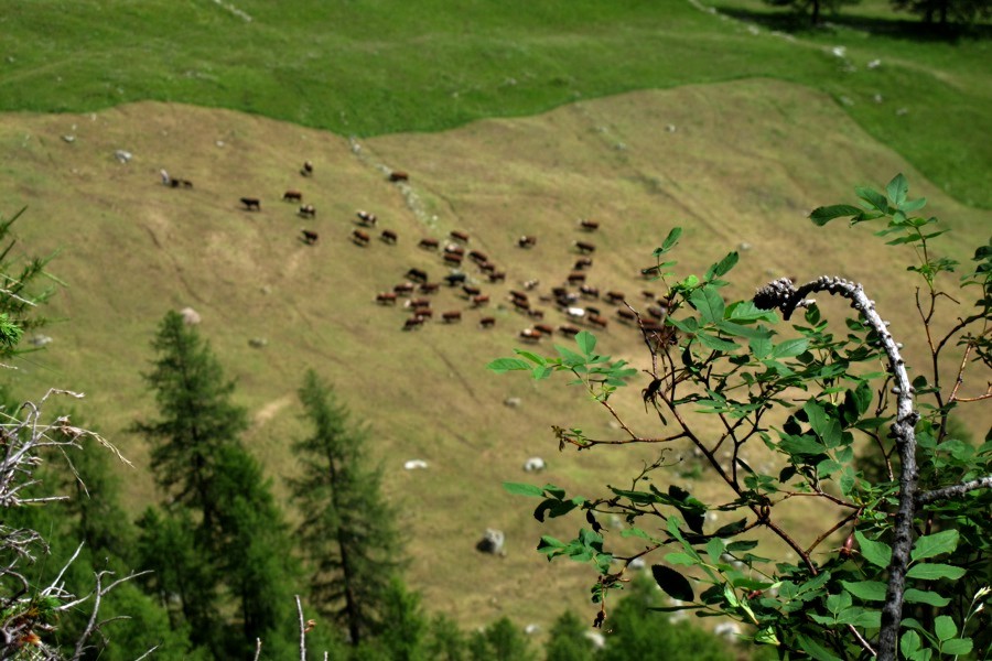 Foto 15/35 - Nell'alpeggio sottostante al sentiero che stiamo percorrendo, una mandria di vacche al pascolo.