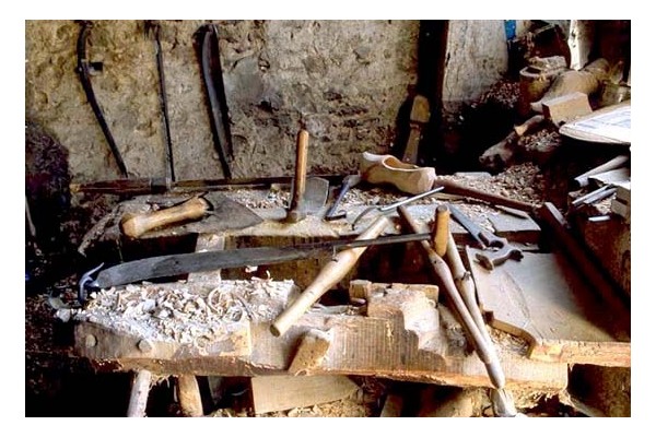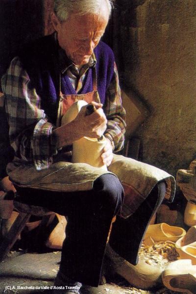 Val d'Ayas, la costruzione degli zoccoli di legno (sabots).