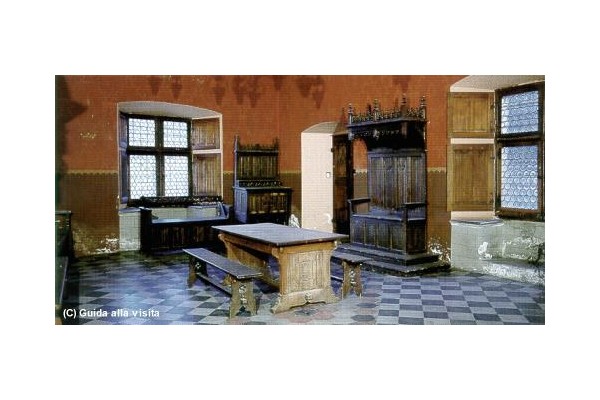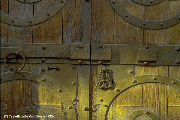 Da sinistra a destra: - Un particolare della serratura del portone laterale. - Due viste della sala del Trono. |