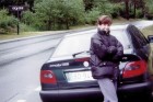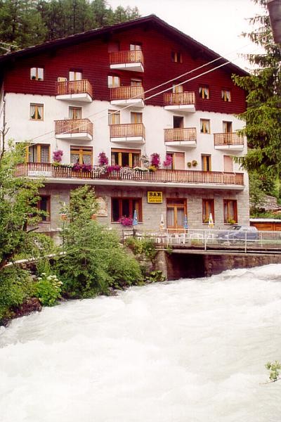Da sinistra a destra: - Fausta saluta dal balcone. - Poi scende per andare a fare un giretto in paese. - Foto d'obbligo con alle spalle il torrente Evançon. |