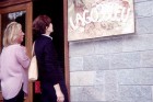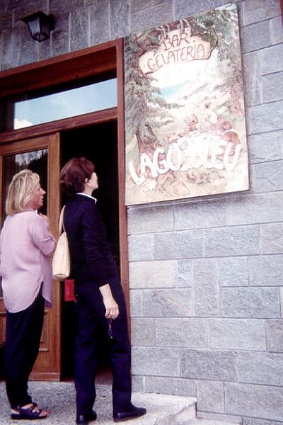Da sinistra a destra: - Il residence Lago Bleu visto dalla piazzetta. - Fausta e la signora Clotilde osservano l'insegna. - Il panorama visto dal balcone del nostro appartamento. |