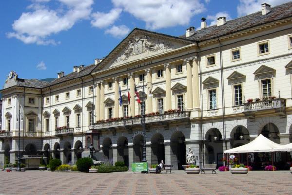 Il Municipio di Aosta, in Piazza Chanoux, visto da ovest.
