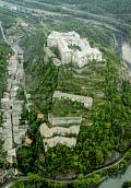 Una veduta aerea del borgo e del Forte di Bard