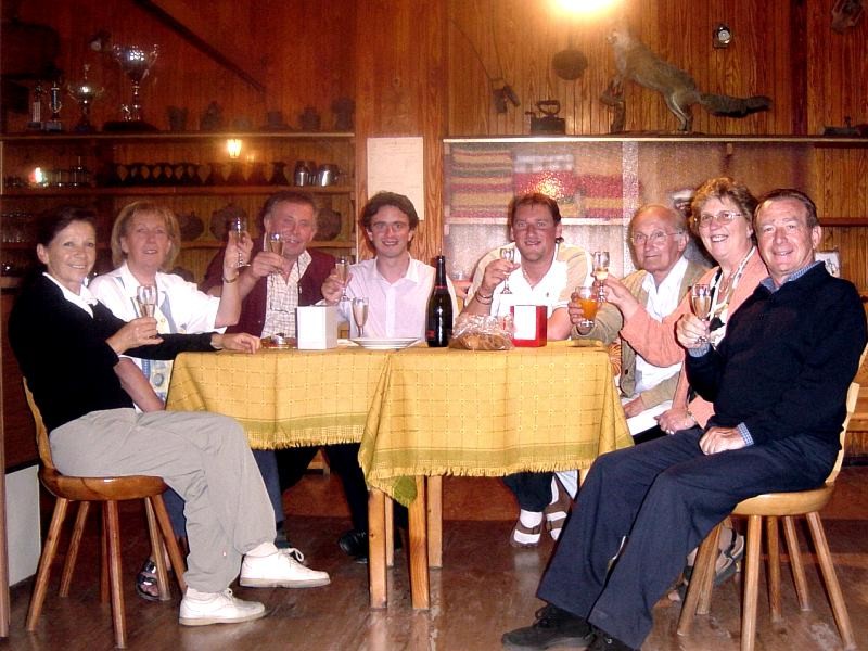 Siamo nella sala del bar del Lago Bleu e facciamo un brindisi di arrivederci con gli amici dato che è il nostro ultimo giorno di permanenza. Il brindisi lo facciamo col Prosecco Superiore di Cartizze Villa Sandi che ci siamo portati proprio per l'occasione e gustiamo le famose Tegole di Verrés.