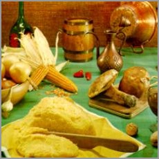 800 gr. di farina di mais - 1 Kg.di funghi porcini - parmigiano grattugiato - prezzemolo - burro - aglio - olio - sale