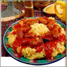 Mettete in un paiolo 2 litri di acqua e, quando bollirà, versatevi 400 gr. di farina di granoturco che farete cuocere per 45 minuti mescolando continuamente.