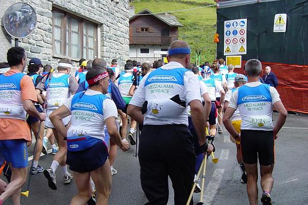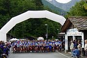 La partenza in linea del Mezzalama Sky Race dalla piazza di Saint Jacques.