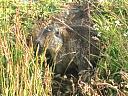 Foto 4/16 - Una giovane marmotta, sorpresa dalla nostra venuta, si nasconde fra l'erba.