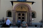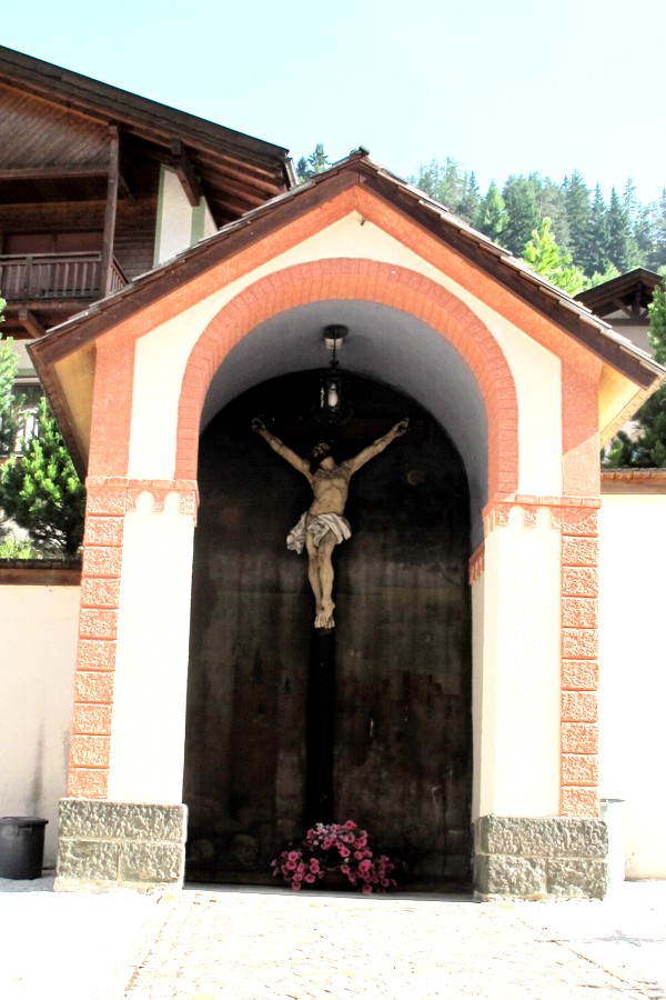 L’ingresso principale della Chiesa di Santa Cristina è rivolto ad occidente ed è raggiungibile tramite un ponte in pietra. Questo venne costruito all’epoca della costruzione della ferrovia in Val Gardena. Un altro ingresso