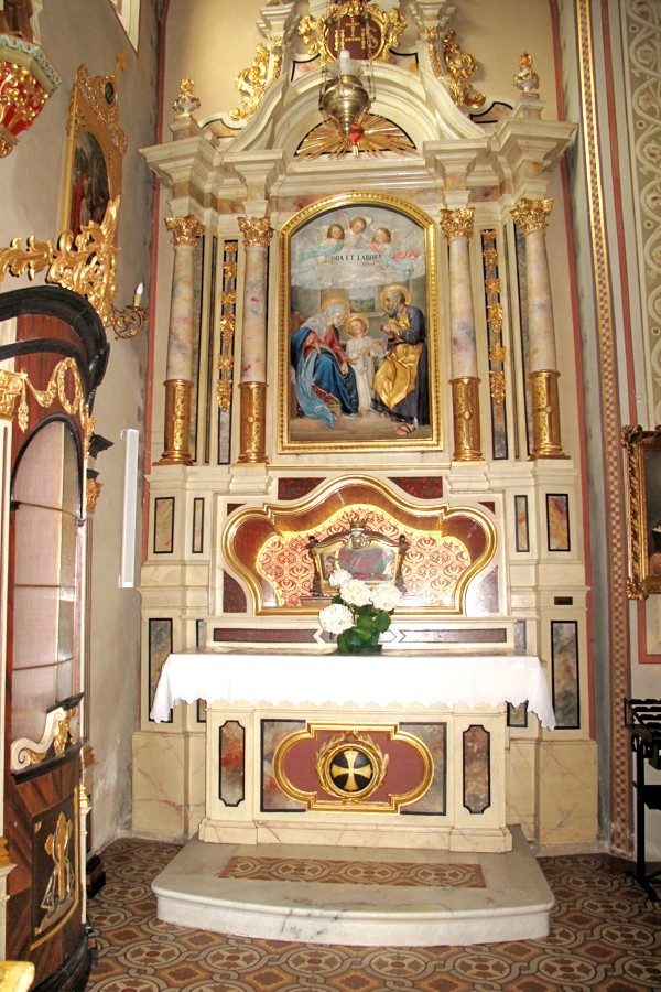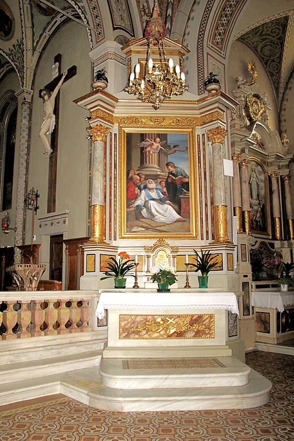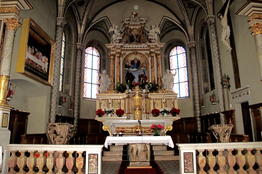 l’altare maggiore, opera della famosa dinastia di artisti Vinazer.