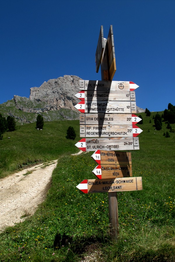Direttamente da Santa Cristina la cabinovia di Col Raiser ci porta in pochi minuti sull'Alpe più soleggiata ed interessante della Val Gardena.