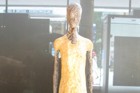 installazione è il cambiamento climatico. Le banane, in colata di gesso, sono bianche e da lontano