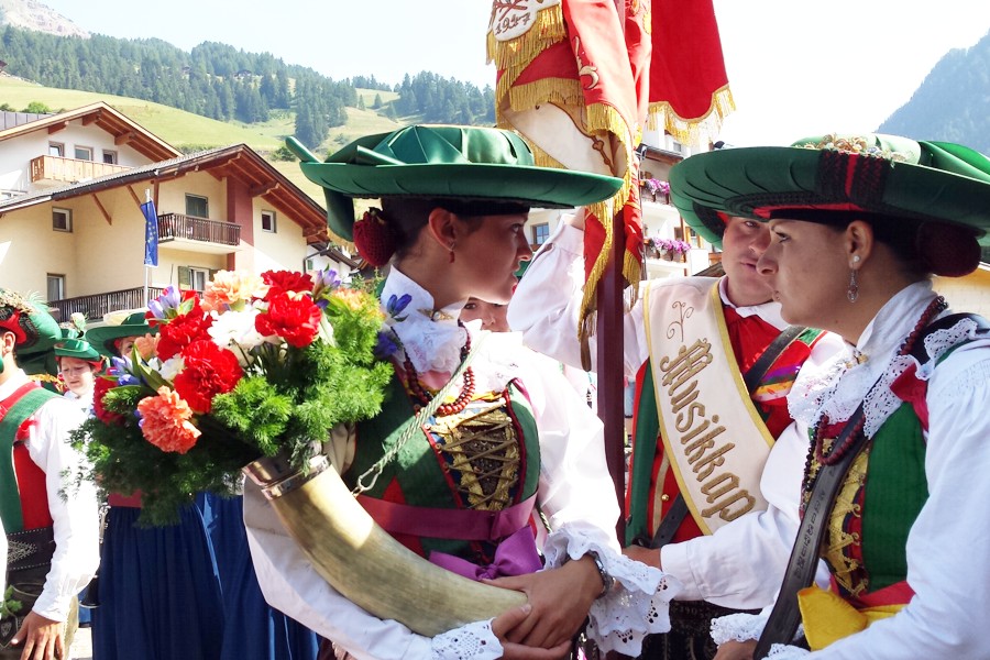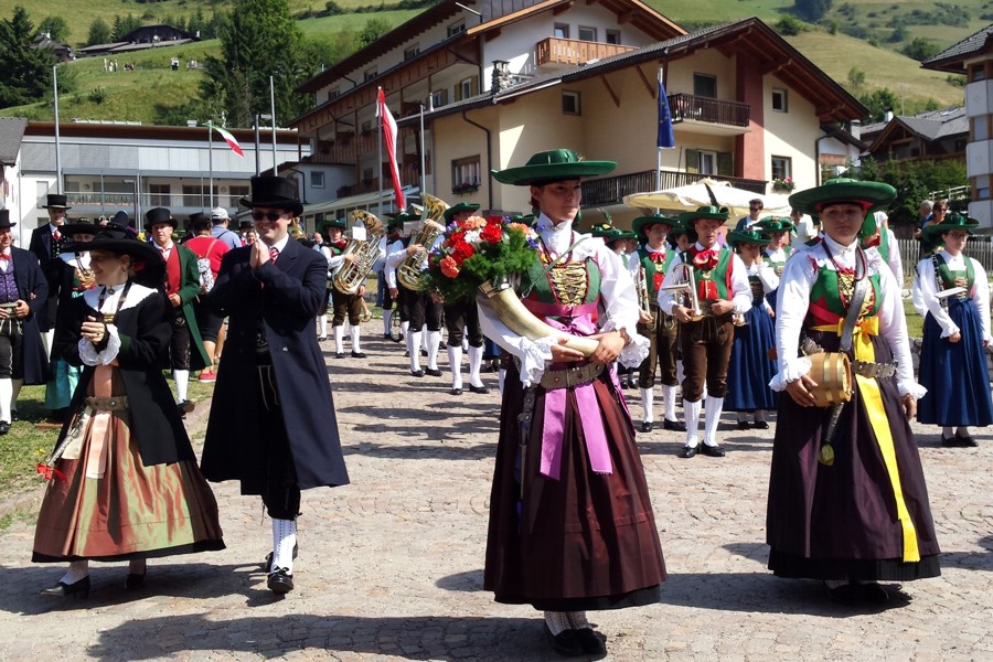 “Val Gardena in costume”. A parte questo festival, le possibilità di ammirare il tipico abito della festa sono molteplici: il costume tradizionale gardenese viene infatti indossato anche in occasione di processioni, feste