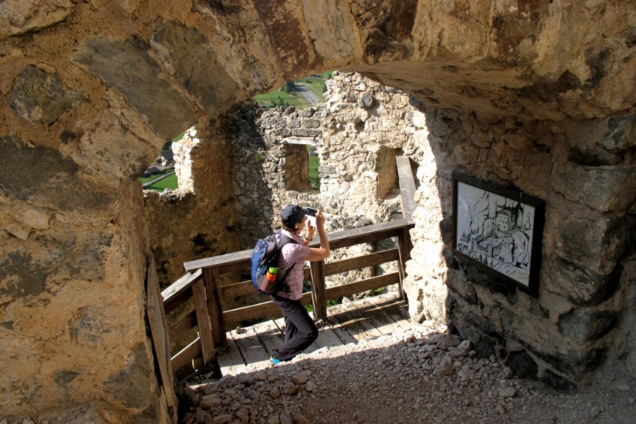 Fausta si sofferma a fotografare le rovine del Castello Wolkenstein.