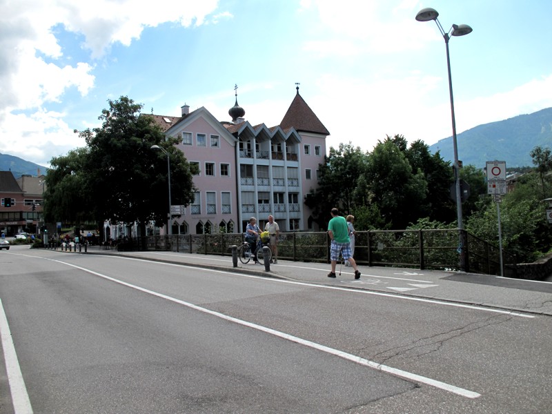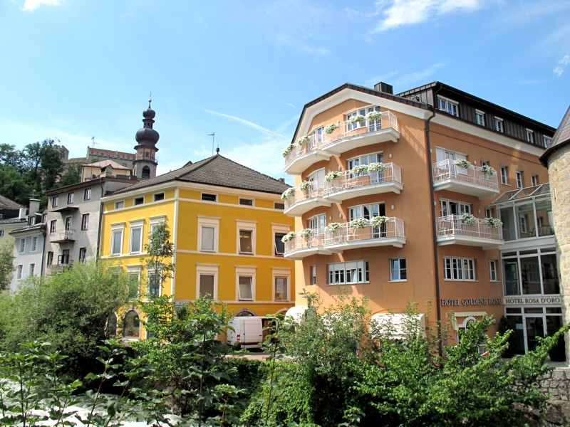 Foto 8/35 - Brunico. L'Hotel Goldene Rose visto dal ponte sulla Rienza. Su questo lato deve trovarsi la camera sul fiume che ho richiesto alla réception dell'albergo.