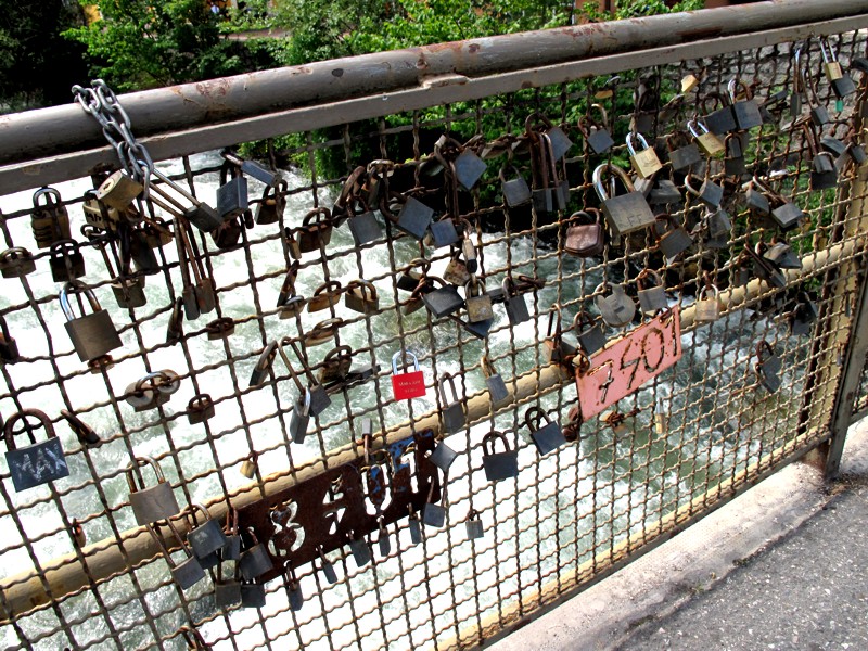 Foto 6/35 - Brunico. Il parapetto del ponte sulla Rienza costellato di «lucchetti dell'amore»!