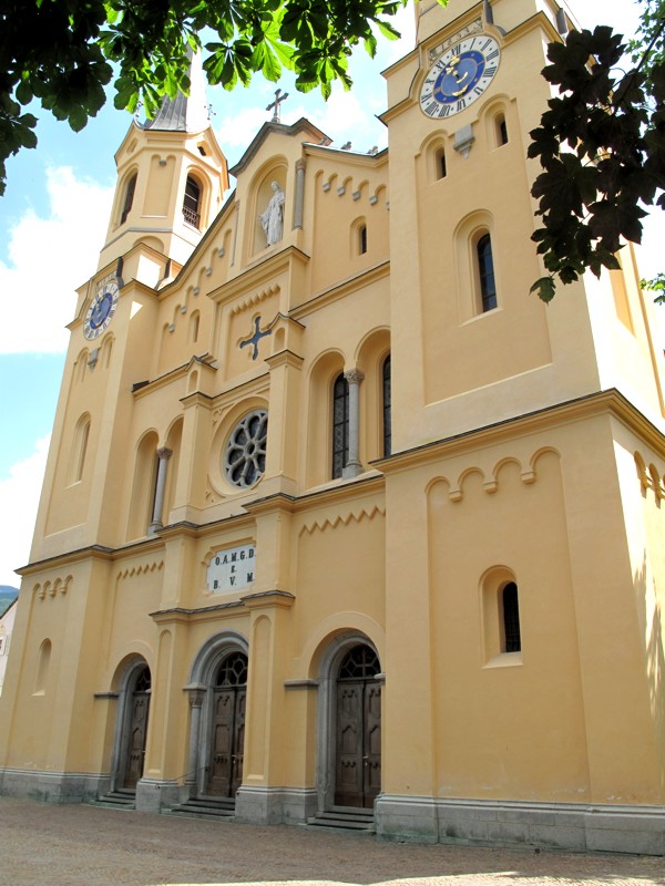 Foto 16/35 - Brunico. La Chiesa parrocchiale. Risale al 1856 e conserva un prezioso crocifisso della bottega di Michael Pacher ed un organo «Mathis», realizzato nel 1983, il più grande dell'Alto Adige. Visiteremo questa chiesa nel nostro prossimo viaggio a Brunico.