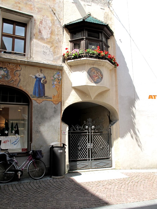 Foto 18/35 - Brunico. Un bel palazzo all'incrocio col vicolo Mühl, in direzione del Lungorezia.