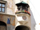 Foto 25/35 - Brunico. Di nuovo in Via Centrale. Un bel cancello in ferro battuto lavorato e un «bovindo» di antica tradizione tirolese.
