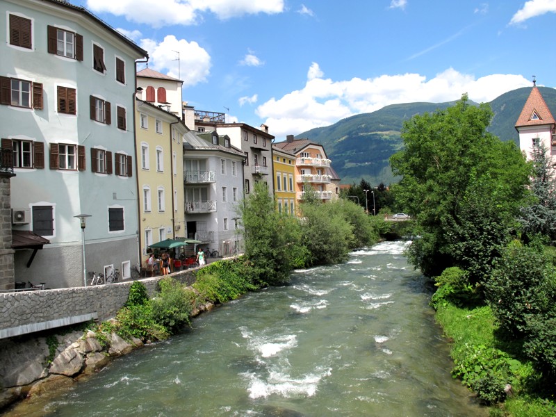 Foto 28/35 - Brunico. Uno sguardo... dal ponte. In fondo a sinistra l'Hotel Goldene Rose.