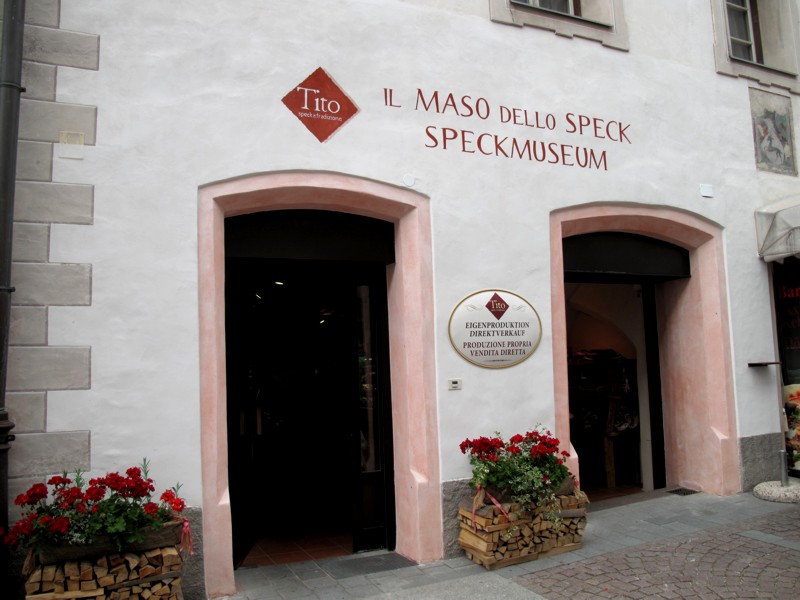 Foto 32/35 - Brunico. Percorrendo la Via Centrale in direzione ovest ci imbattiamo in un negozio «Tito», ovvero il «Maso dello Speck», come quello di Castelrotto e di Bolzano.