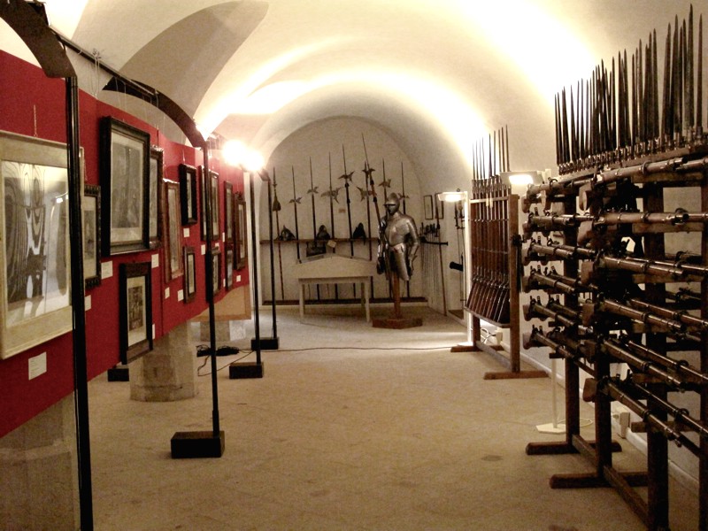 Foto 15/55 - Castel Presule. Sala d'armi. Di fronte alle rastrelliere con le armi una serie di