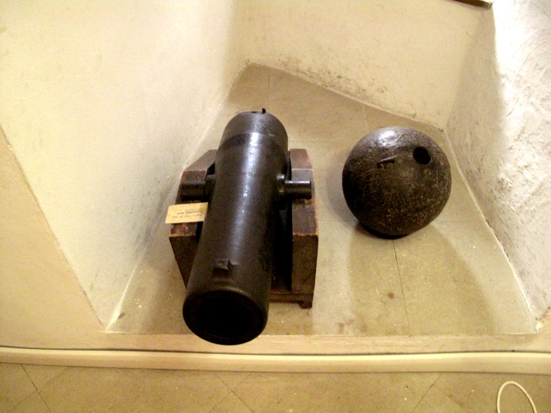 Foto 16/55 - Castel Presule. Sala d'armi. Una colubrina e una palla di cannone.