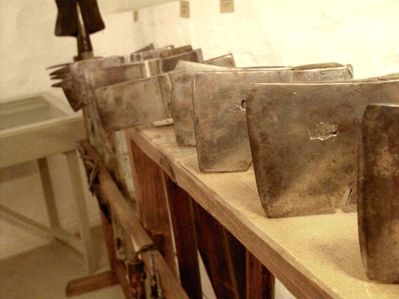 Foto 19/55 - Castel Presule. Sala d'armi. Una collezione di asce da combattimento.