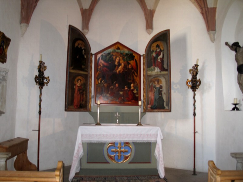 Foto 34/55 - Castel Presule. Interno della cappella dedicata a S. Anna. Sull'altare un pregevole