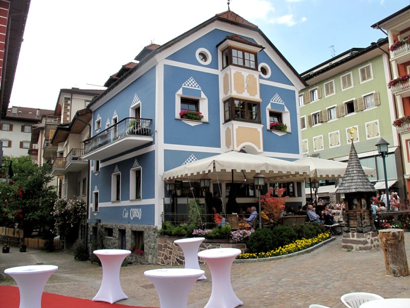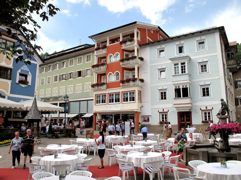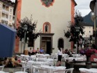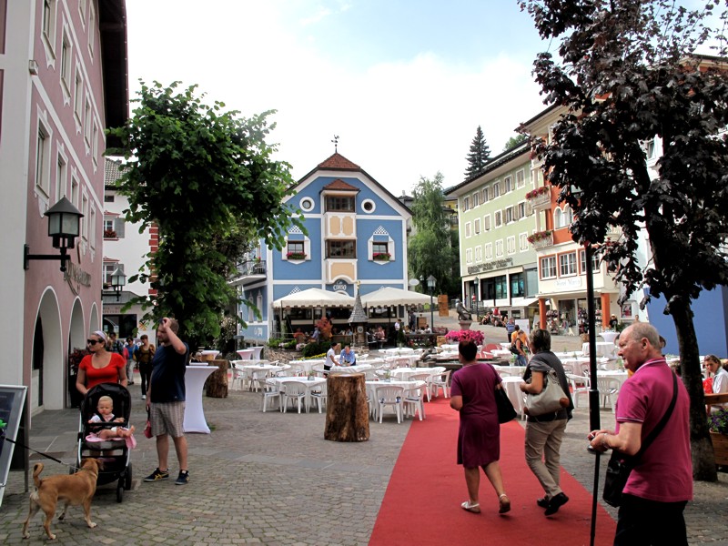 Foto 32/40 - Ortisei. Piazza S. Antonio con i tavoli pronti in attesa dei commensali.