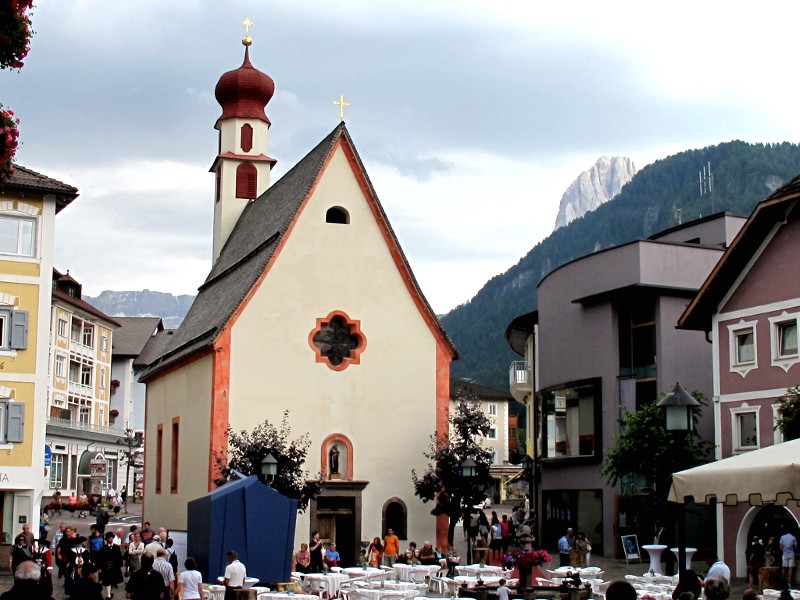 Questa chiesetta, dedicata a S. Antonio e costruita nello stile Rinascimentale, giace nel centro di Ortisei, sulla piazza dedicata allo stesso Santo. Nei mesi estivi viene messa a disposizione per le funzioni religiose della