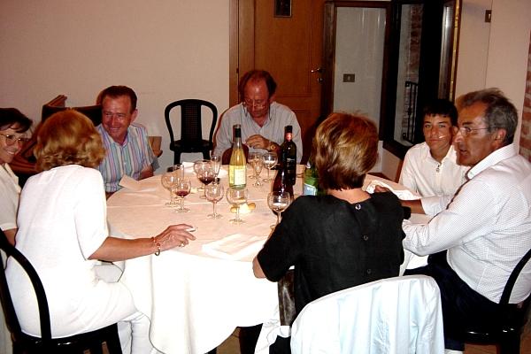 A cena, il sabato sera. Al nostro tavolo: dalla mia sinistra Giorgio, Niccolo', il figlio di Pirro, di spalle Mirella e Laura (che si è seduta al posto di Roberto) che sta parlando con Fausta