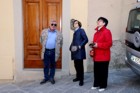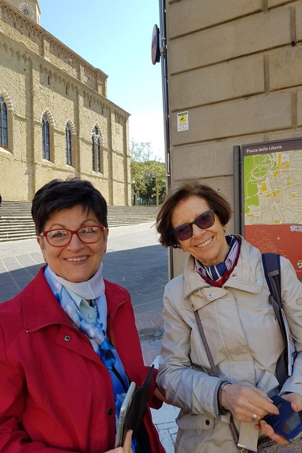Con Fausta e Tiziana sul sagrato del Duomo. Alle nostre spalle l'ingresso del MUDAS il Museo d'Arte Sacra di Arezzo.