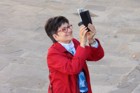 Usciti dalla visita al Duomo Tiziana cerca di fotografare l'intera struttura.