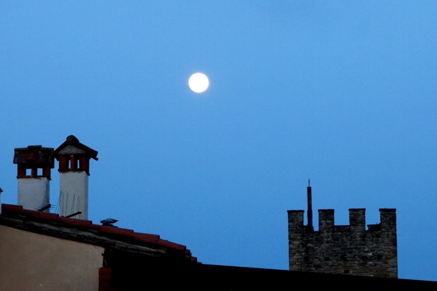 Una serata di luna piena per concludere il nostro incontro con gli amici. Uno sguardo sui tetti di Arezzo e, sullo sfondo, la torre della Chiesa di Santa Maria della Pieve.