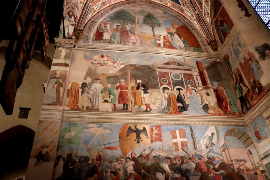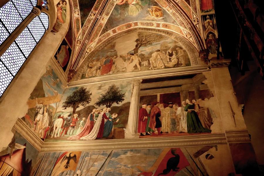 La leggenda della Vera Croce di Piero della Francesca. All’unanimità è considerato il suo capolavoro. Il ciclo di affreschi nel coro della Basilica di San Francesco – restaurato nella prima