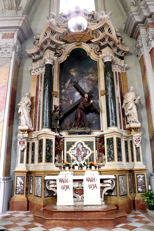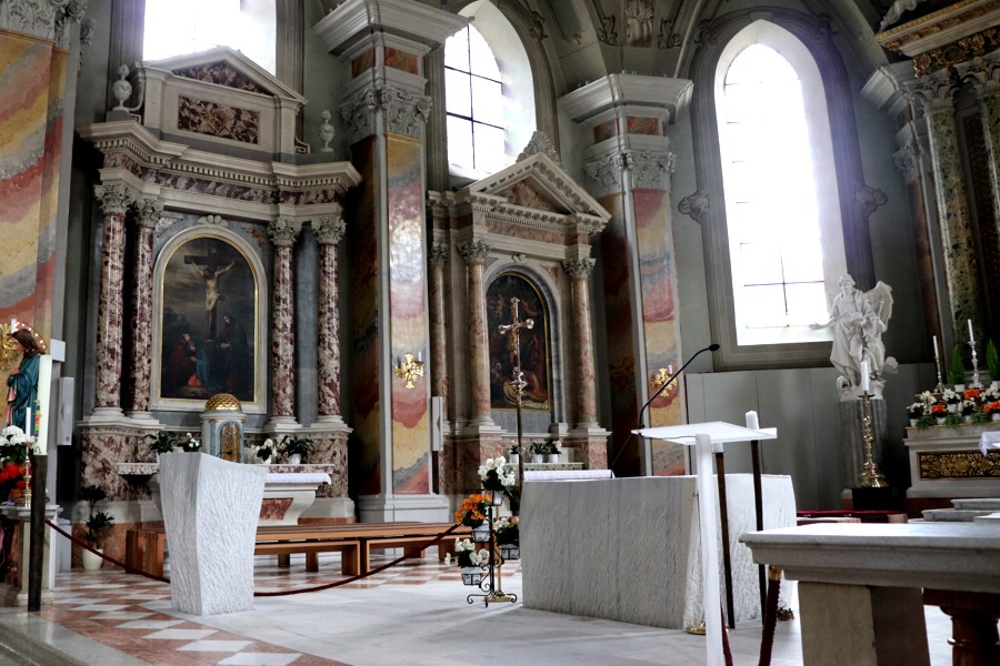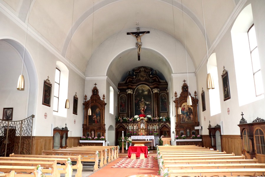 barocchizzata dopo il 1750 con affreschi di Josef Hautzinger di Vienna, uno dei discepoli di Paul Troger. Altro artista che partecipò fu il pittore Francesco Unterberger di Cavalese.
