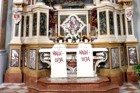 arcangelo. La struttura ha un coro gotico, sette gli altari, un campanile (noto come "Torre Bianca") eretto nel XV secolo, mentre la navata è gotica del tardo Cinquecento. La chiesa è stata