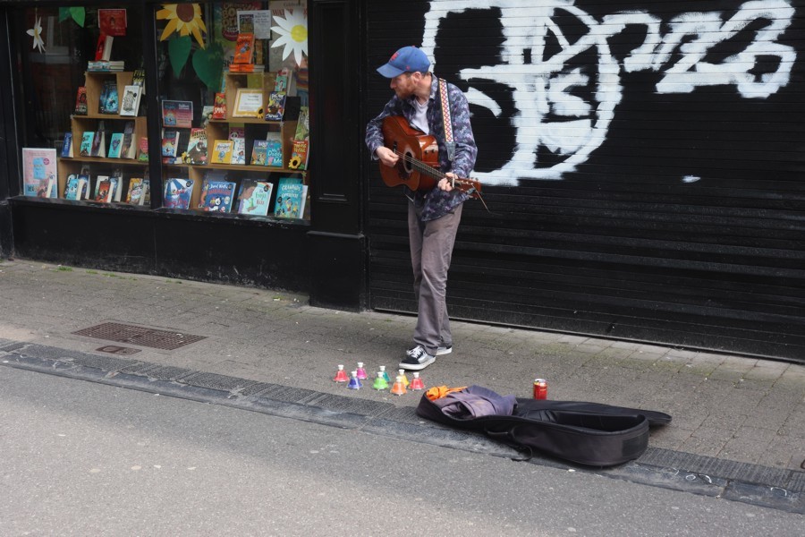 Prima di tornare a casa per pranzo abbiamo fatto un giro nel centro nevralgico di Cork. Varia umanità, musicisti ambulanti, negozi di ogni genere più o meno come nel centro delle nostre città,