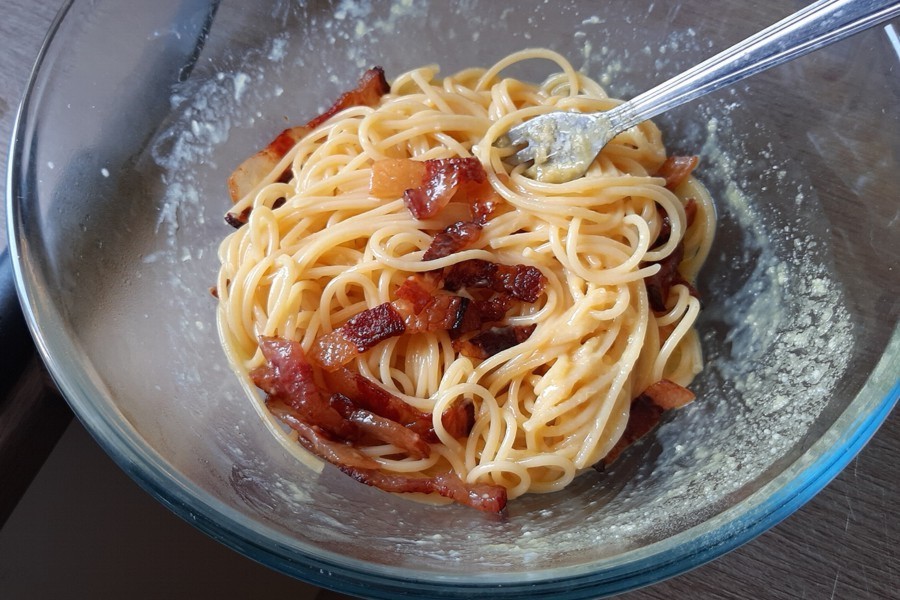 Munito di tutto l'occorrente, tornati a casa, ho preparato una fantastica Carbonara! Ce l'avevo in testa nell'esatto momento in cui, all'English Market, ho visto il guanciale! Un piccolo