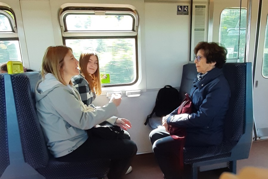 Finita la visita torniamo in stazione per riprendere il treno. Abbiamo fatto una bella camminata e siamo un po' stanchi. Ora torniamo in città ma ci rivediamo per l'ora di cena dato che i