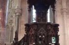 degno di nota il pulpito in legno, maestoso l'organo sovrastato da uno stupendo rosone, particolare l'altare arabescato di una cappella cappella laterale dove c'è anche un cartello che spiega