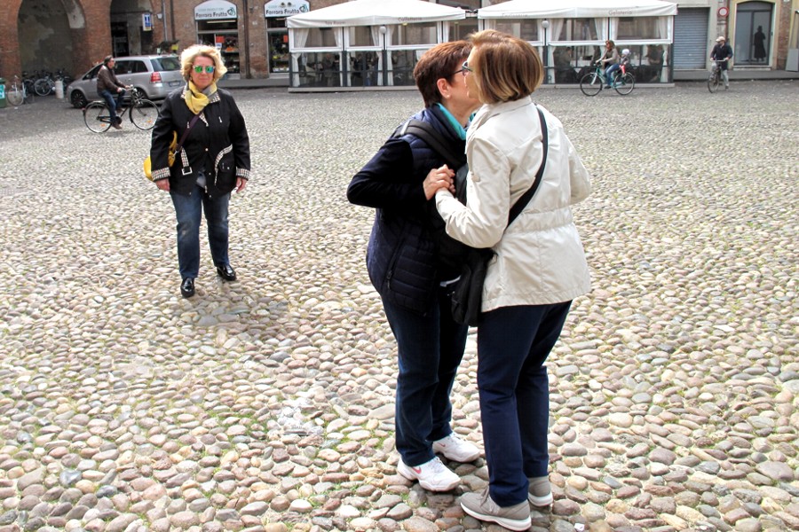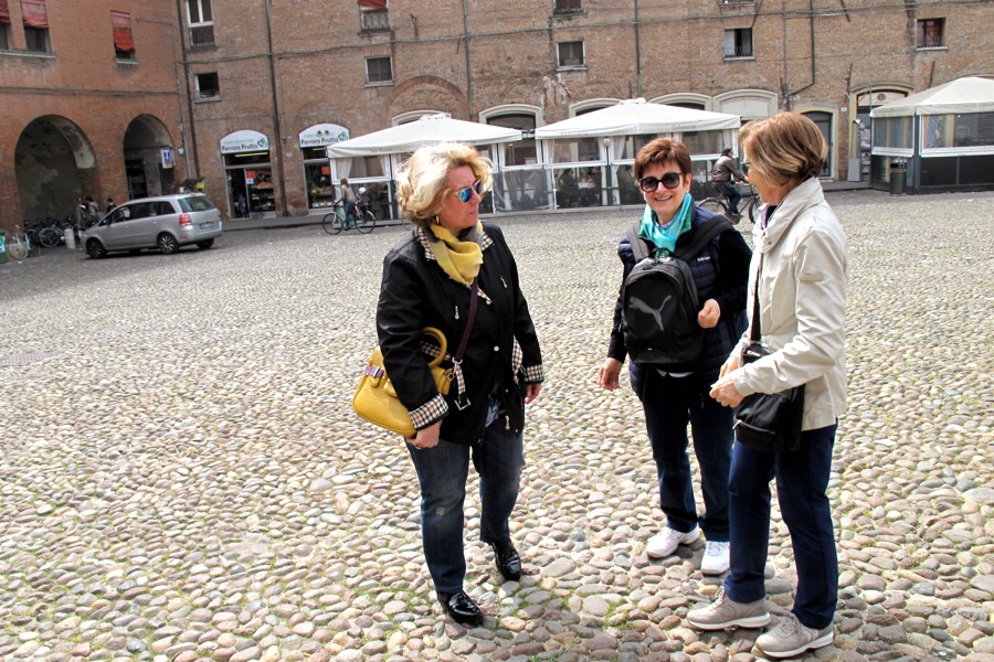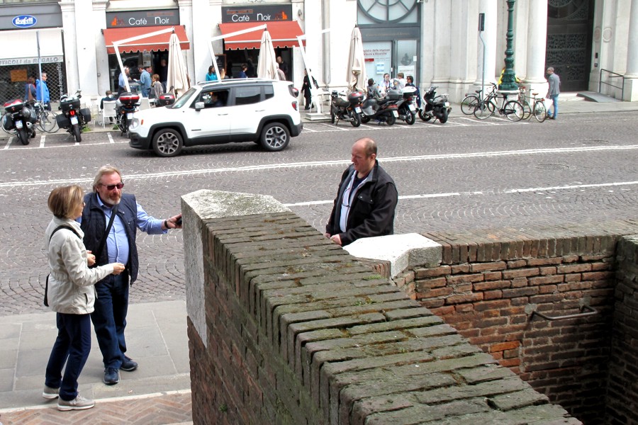 Il luogo fissato per l'appuntamento con gli Amici di Forum è l'ingresso nord del Castello Estense. Ecco Aldo e Max; ma gli altri dove sono?