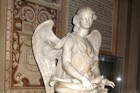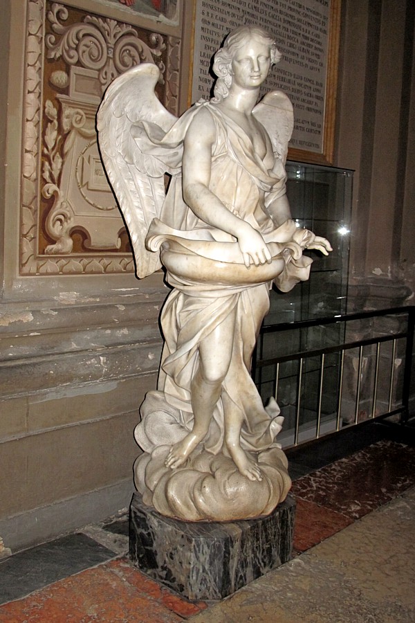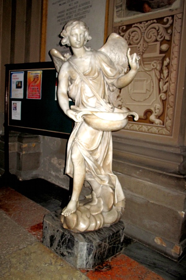 A sinistra del portale d'ingresso al Duomo un angelo con l'acquasantiera.