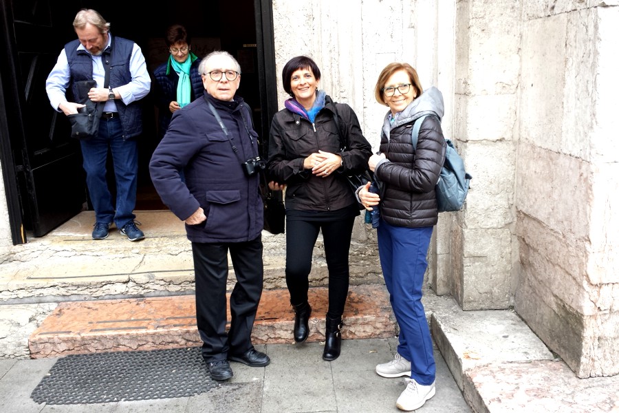 Eccoci tutti sotto l'arco del Palazzo della Ragione ora Palazzo del Comune.