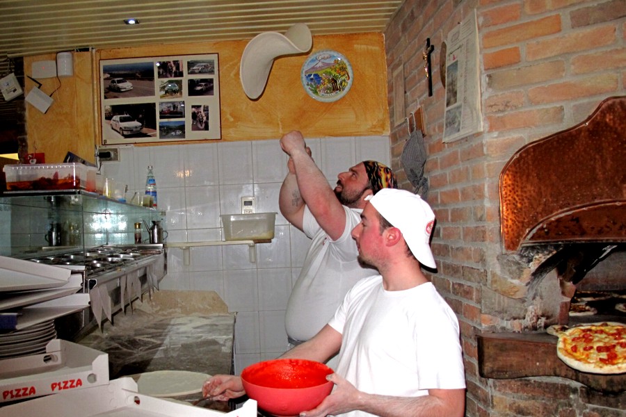Qui Fabio, il pizzaiolo, si esibisce in una riuscitissima "veronica"!
